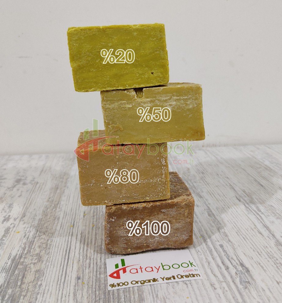 Hataybook.com ürünleri olarak katkısız Defne yağı sabunun yapımında 3 temel madde kullanılmaktadır; Hakiki Defne yağı , zeytinyağı ve sabun mayası yer alır.