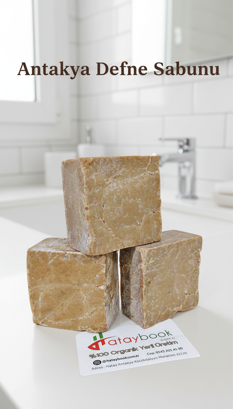 Hataybook sabunlarımız sezonluk üretilen %100 katkısız defne yağından yapılmaktadır. Defne yaprağı veya defne esansı ile yapılan diğer defne sabunları ile karşılaştırmayınız. Defne sabununun kaliteli olup olmadığını anlamanın yolu hem rengine hem de kokusuna bakmaktır.