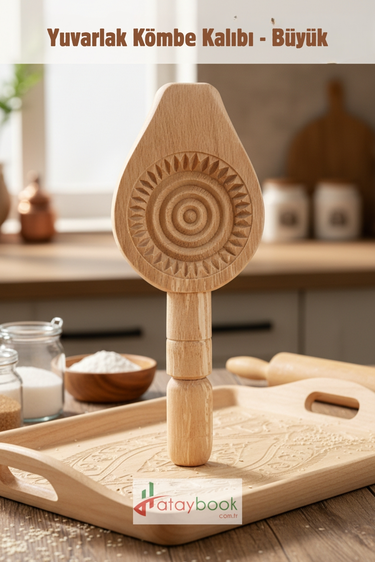 Hatay Antakya’nın Meşhur Kerebiç ve Kömbe kurabiyesi yapmak için kullanılan kalıplardır. Kömbe ve Kerebiç kalıpları kayın ağacının en iyi yerinden tek parça olarak el emeği ile işlenerek yapılır.