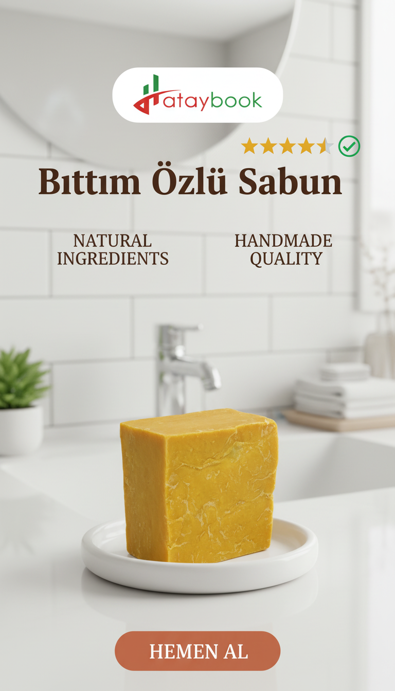 Hataybook.com ürünleri olarak katkısız Bıttım sabunun yapımında 3 temel madde kullanılmaktadır; Bıttım yağı , zeytinyağı ve sabun mayası olarak bilinen köstik ( kimyasal adıyla sodyum hidroksit ) yer alır.