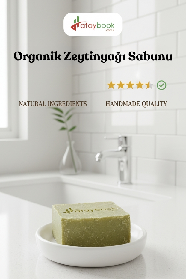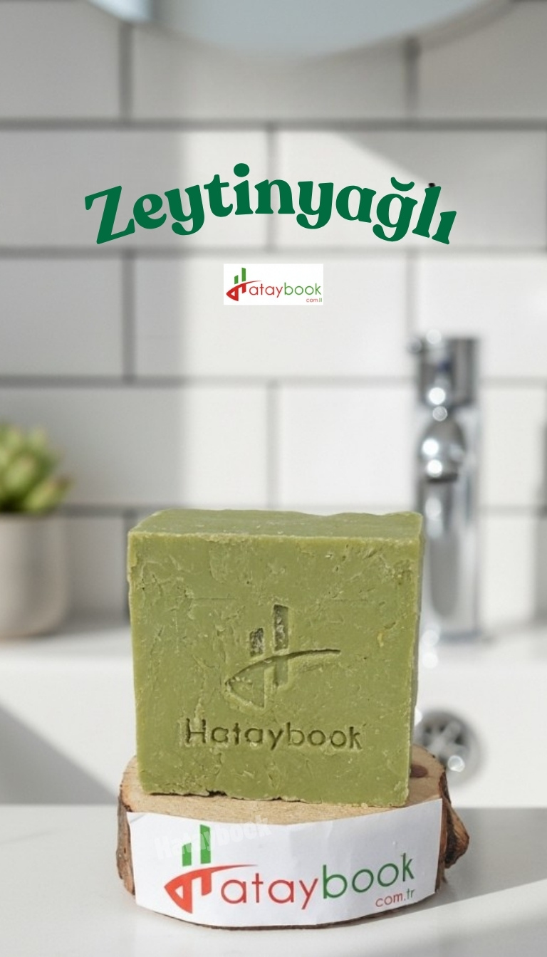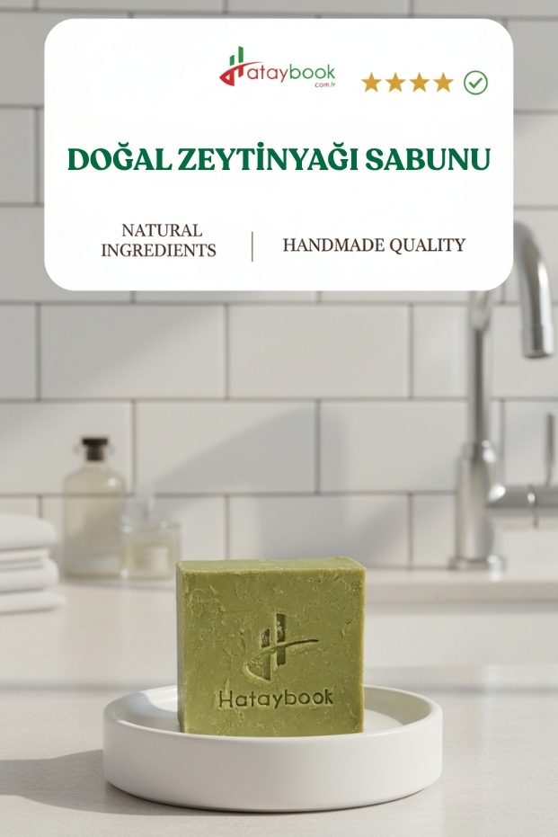 Hataybook.com ürünleri olarak katkısız Zeytinyağı sabunun yapımında 2 temel madde kullanılmaktadır; %100 doğal zeytinyağı ve sabun mayası olarak bilinen köstik ( kimyasal adıyla sodyum hidroksit ) yer alır.